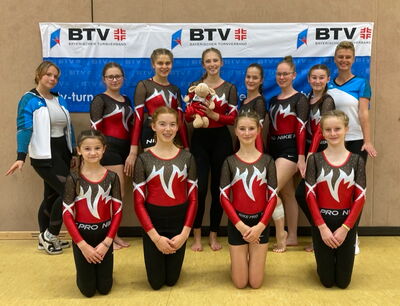 Am Samstag, den 21.10.2023 fand in der Sparda-Bank Sporthalle des ETSV Landshut der Turn10 Gau-Cup 2023 statt. Bereits um 7.00 Uhr starteten zehn Turnerinnen der Gerätturn - Wettkampfgruppe des TV Landau zusammen mit ihren Trainerinnen Simone Sturm und Emma Schinköthe nach Landshut. Aufgrund der hohen Teilnehmerzahl musste der Wettkampf in zwei Abläufe eingeteilt werden – die Jahrgänge 2012 bis 2017 vormittags, die Jahrgänge ab 2011 nachmittags. Drei der Turnerinnen bestritten ihren ersten Wettkampf, darunter Aurelia Huber, die als einzige TV Landau Turnerin bereits am Vormittag ihr Können unter Beweis stellte. Die Mädchen konnten aus den fünf Geräten Tisch, Minitrampolin, Reck, Schwebebalken und Boden vier auswählen und ihre Küren bzw. Sprünge zeigen. Nachmittags waren dann Fiona Huber, Larissa Vrabac, Hanna Wallner (für diese drei der erste Wettkampf), Lea Fröschl, Julia Sturm, Nicole Kaltenberger, Vivien Fuchs, Margarete Griesbach und Tabea Bode für den TV Landau am Start. Die Mannschaft konnte sich in fast allen Bereichen im Vergleich zum letzten Wettkampf steigern und nicht zuletzt der große Trainingsfleiß zahlte sich am Ende aus. Die Mannschaft konnte stolze zwei Podestplätze erzielen: Vivien Fuchs konnte in der Altersklasse W14/15 den zweiten Platz erreichen, Margarete Griesbach in der Altersklasse W16-24 den dritten Platz. Mit neun von zehn Plätzen unter den Top 10 bei Teilnehmerzahlen bis zu 60 Mädchen pro Altersklasse konnte sich die Mannschaft mit ihren Trainerinnen mehr als zufrieden zeigen. Neben den sportlichen Erfolgen konnte die Mannschaft auch durch ihren Teamgeist punkten und somit kehrte die Mannschaft nach einem langen, aber erfolgreichen Wettkampftag abends wieder nach Hause zurück.